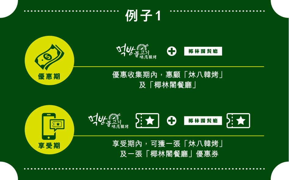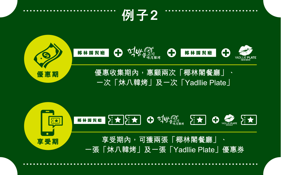 條款及細則 • 優惠收集期內 (21/11/2016 - 31/12/2016),凡透過Storellet 成為任何兩間指定餐廳的會員,並於兩間餐廳作任何消費及儲分,均符合資格 • 需惠顧兩間不同品牌餐廳 • 注意:牛一的優惠收集期為 21/11/2016 - 23/12/2016 • 優惠券將於2017年1月3日發放到會員於該餐廳的 Storellet 帳戶內 • 每張優惠券使用條款各異,詳情請參閱相關細則 • 圖片只供參考 • 產品由指定餐廳提供,Storellet 並未提供任何餐飲 • Storellet 及指定餐廳均保留優惠券使用的最終決定權 • 如有任何更改,恕不另行通知